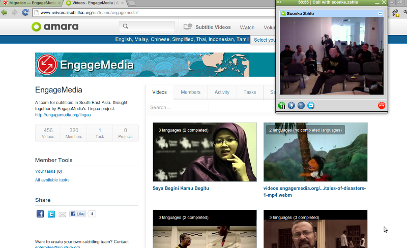 Lastly, on 14 December 2012, I did a live stream presentation on Amara and EngageMedia’s utilization of it during the Online Video Forum in Berlin, Germany. I gave an introduction on both organisations, ran through how we use Amara on our website, gave a live demonstration of the 4-step process, and shared about how we build and manage subtitling teams.
