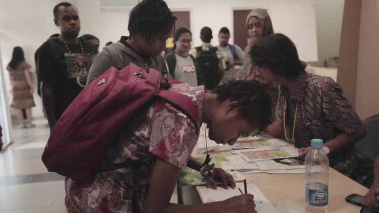 Karon, one of the Papuan Voices II alumni, received an appreciative gift from the organisers.
