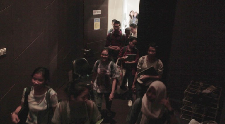 Students and Papuan guests entering the theatre.